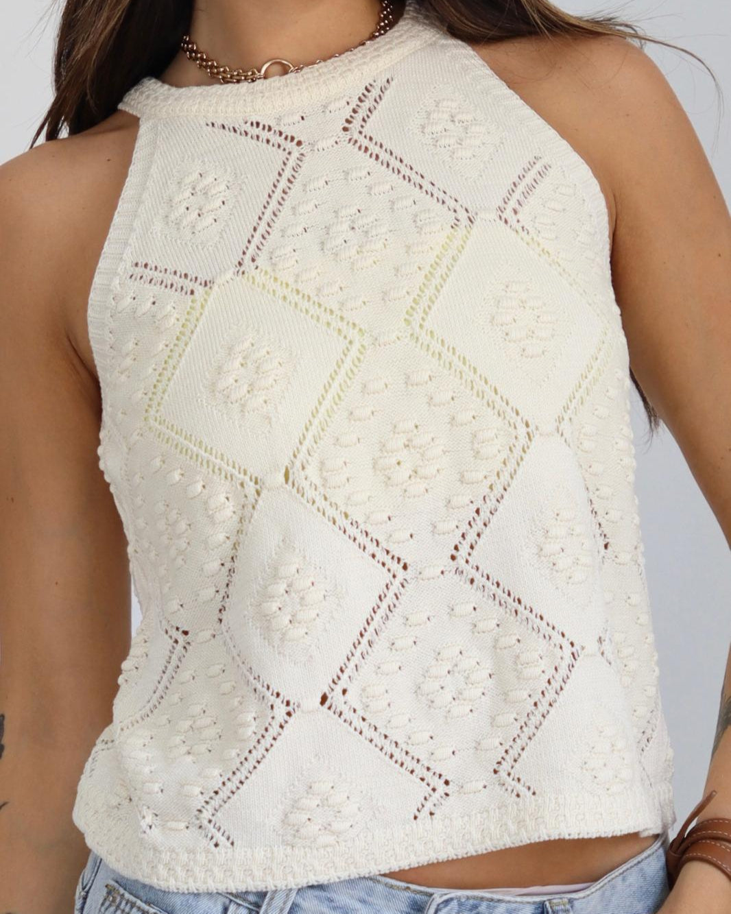 גופיה בגזרת קולר מבד סרוג בשילוב צורות גיאומטריות סרוגות.