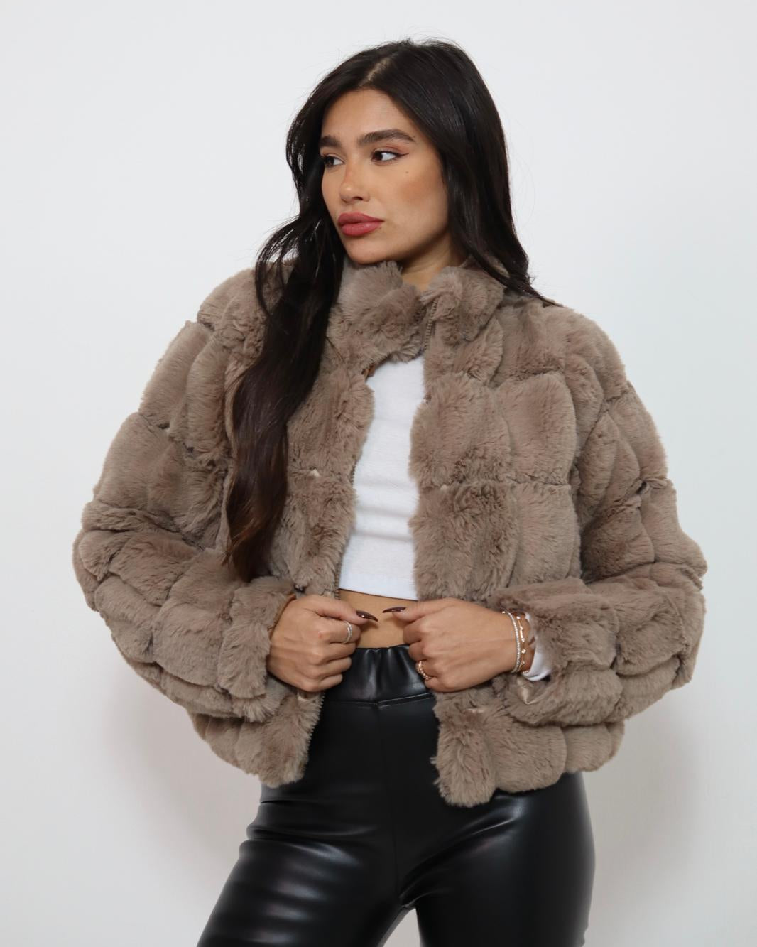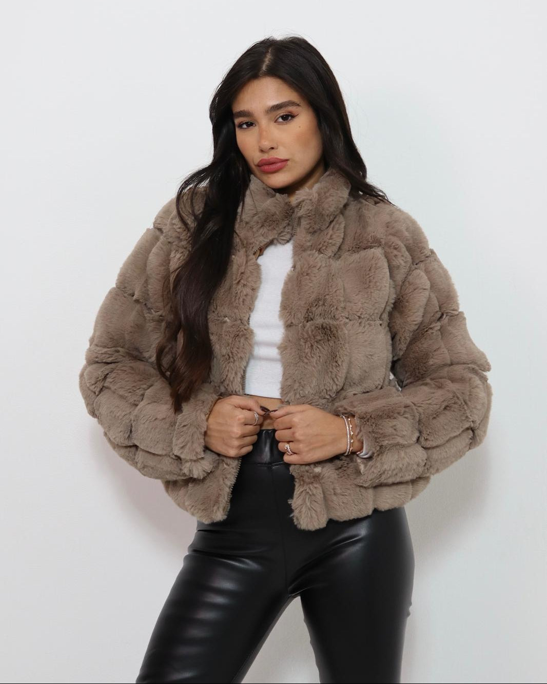 ג'קט פרוותי אלגנטי מעניק מראה יוקרתי וחמים. בעל בטנה וסגירת רוכסן.