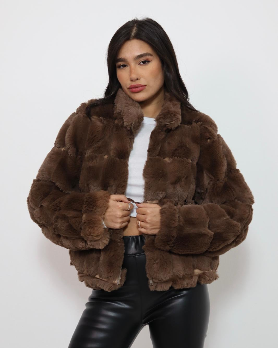 ג'קט פרוותי אלגנטי מעניק מראה יוקרתי וחמים. בעל בטנה וסגירת רוכסן.