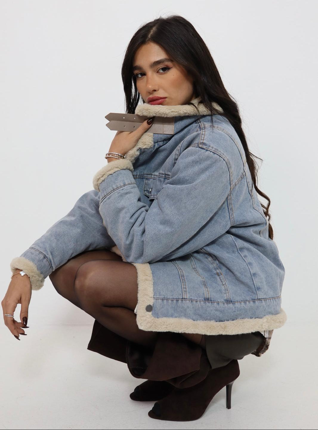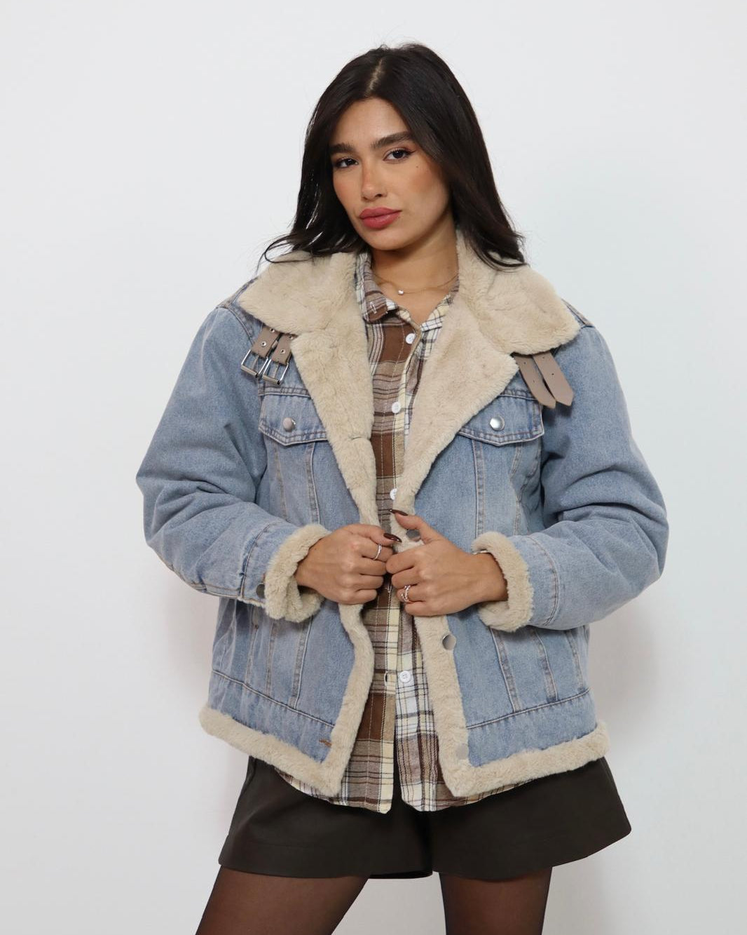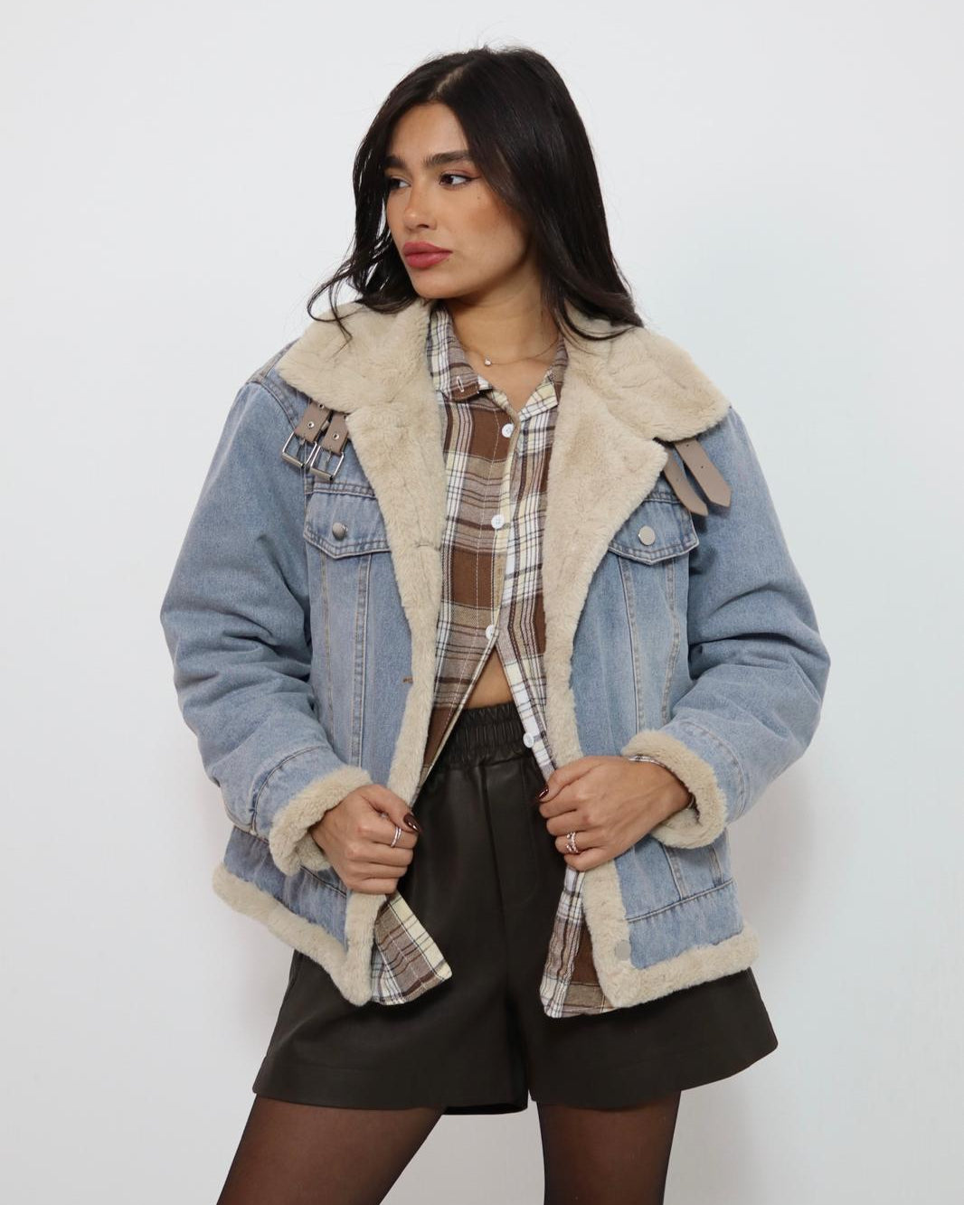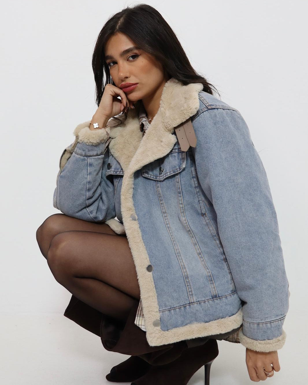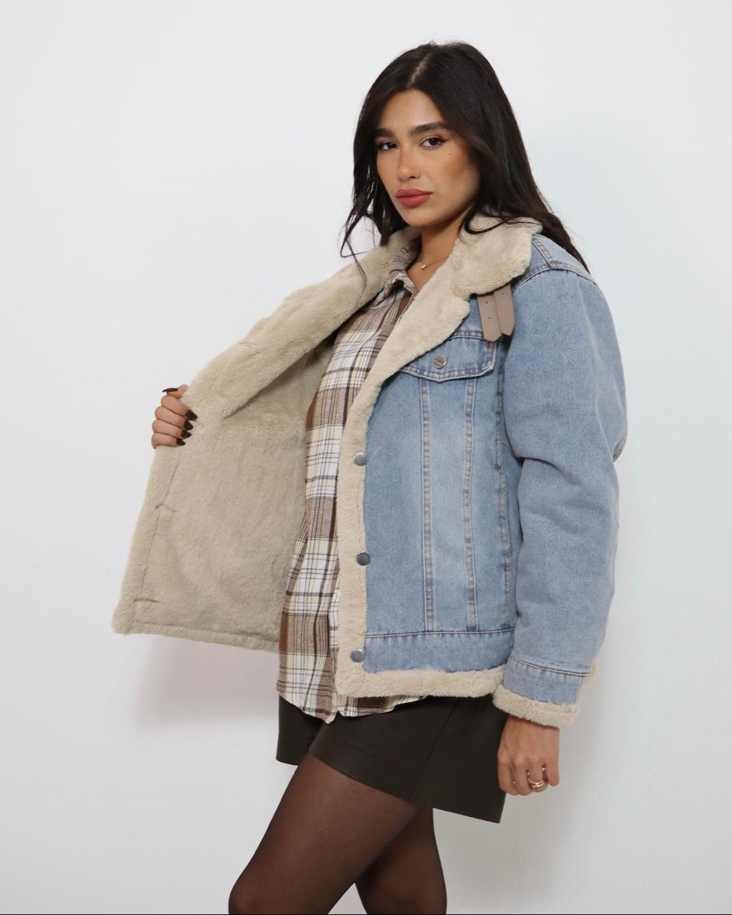 מעיל ג’ינס אופנתי עם בטנת פרווה רכה ונעימה, שמשלב בין מראה קז’ואלי לשיק חורפי מדויק.